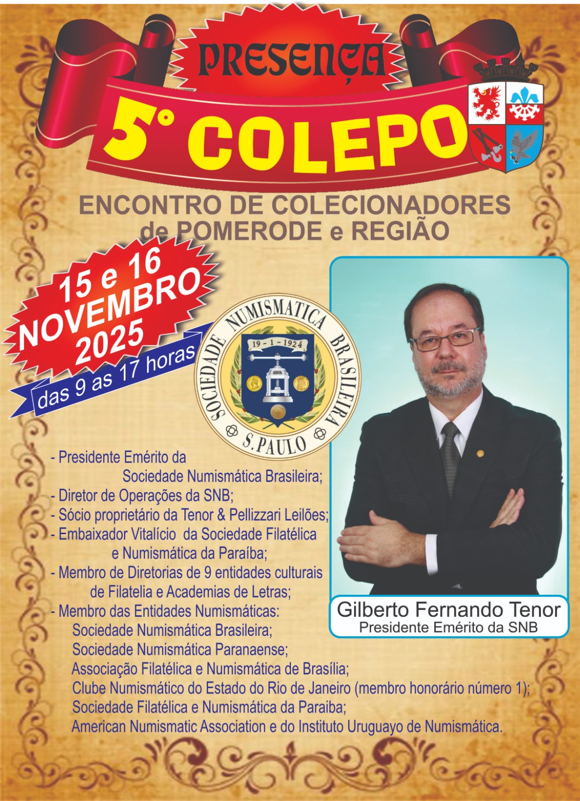 Com ambiente familiar e voltado à educação patrimonial, o encontro deve atrair colecionadores, estudantes, professores e visitantes interessados em história, cultura e preservação de acervos. A diversidade de peças e expositores fará do COLEPO uma oportunidade única para quem deseja ampliar conhecimentos sobre numismática, trocar experiências e valorizar o passado por meio das moedas que contaram a história do Brasil.