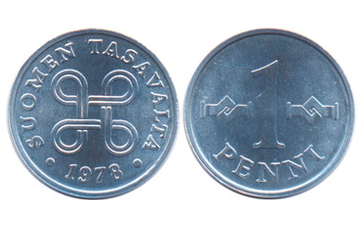 Entre 1969 e 1979, a Finlândia colocou em circulação a moeda de 1 penni. Ela pesava apenas 0,45 grama. Era composta quase totalmente de alumínio e está entre as moedas mais leves já usadas no dia a dia na Europa.